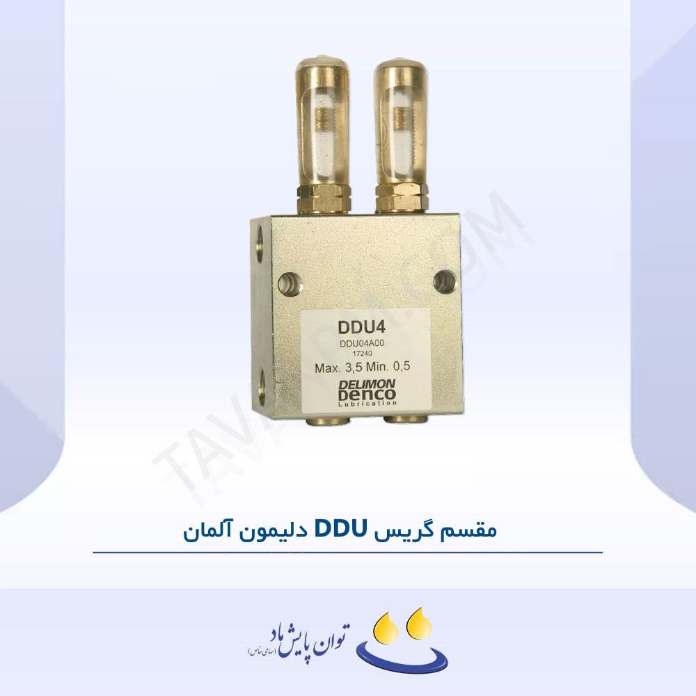 مقسم گریس DDU دلیمون آلمان یک Measuring Valve مخصوص سیستم‌های روانکاری دوخطی (Dual-Line) است که به صورت Line-Mounting نصب شده و در هر سیکل فشار، حجم مشخصی از روانکار را به نقاط تعریف‌شده ارسال می‌کند. این مقسم گریس برای کاربردهای صنعتی سنگین که به توزیع مطمئن و قابل تنظیم نیاز دارند طراحی شده است.