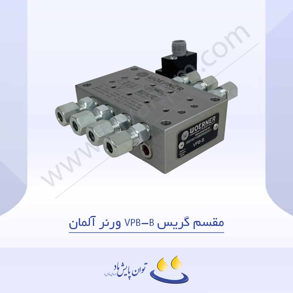 مقسم گریس VPB-B ورنر آلمان یک مقسم گریس پیشرونده با طراحی بلوکی و فشرده است که امکان توزیع مرحله‌ای و کنترل‌شده روغن یا گریس را در سیستم‌های روانکاری مرکزی فراهم می‌کند. این طراحی یکپارچه، علاوه بر کاهش فضای نصب، هزینه‌های نگهداری و اجرا را نیز به‌طور قابل توجهی کاهش می‌دهد.