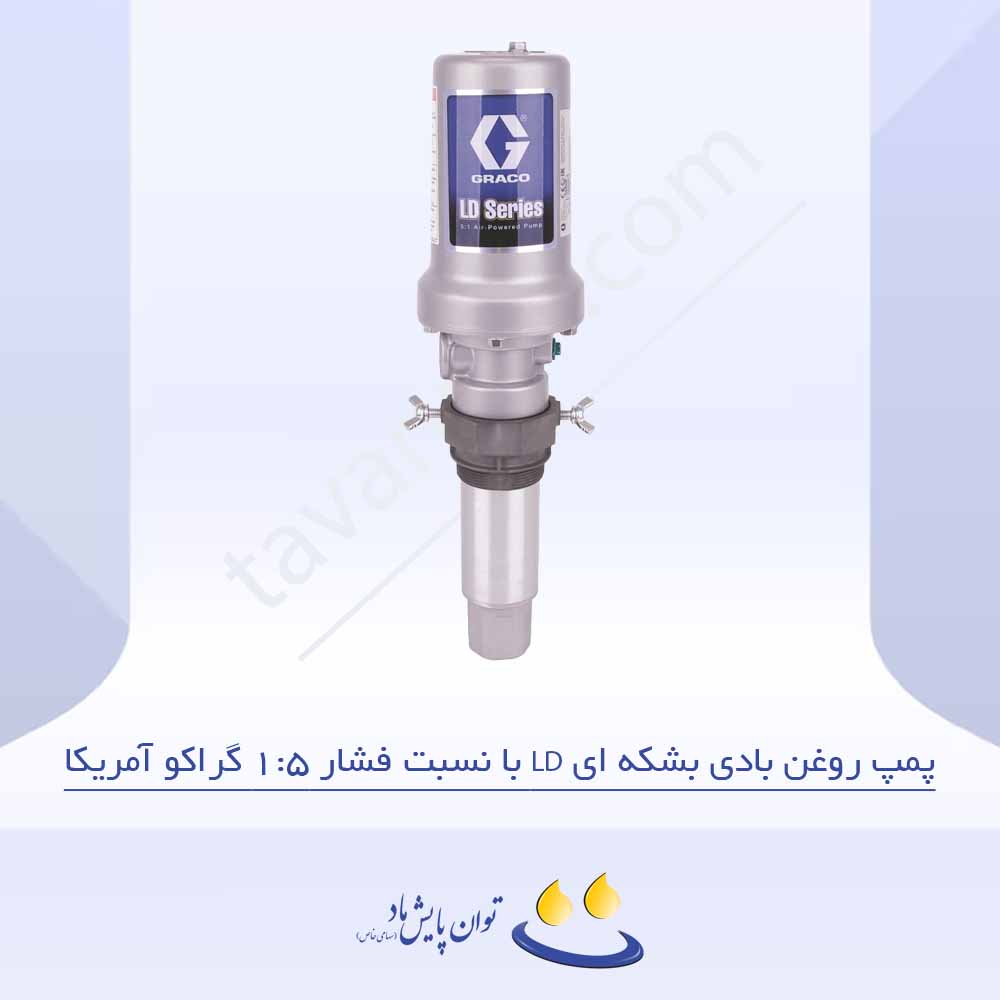 پمپ روغن بادی بشکه ای سری LD با نسبت فشار ۱:۵ (LD Series 5:1 Universal Oil Pump) یکی از محصولات پرکاربرد شرکت گراکو (Graco) آمریکا است که برای انتقال روغن در صنایع سبک تا متوسط طراحی شده است. این پمپ روغن با بهرهگیری از موتور بادی سه اینچی، توانایی ایجاد فشار بالا برای پمپاژ روغن را دارد و با وجود قیمت رقابتی، دوام و کارایی طولانیمدت را تضمین میکند. طراحی مقاوم و استفاده از سیستمهای حفاظتی داخلی مانند محافظ حرارتی و صافی ورودی باعث شده این پمپ در کارگاههای تعمیراتی، صنایع خودرویی و خطوط تولید انتخابی مطمئن باشد.