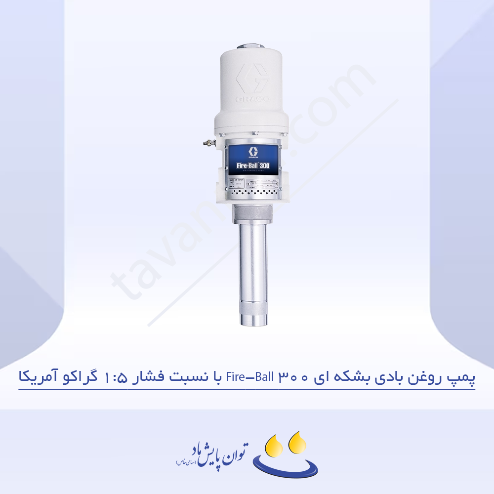 پمپ روغن بادی بشکه ای Fire-Ball 300 با نسبت فشار ۱:۵ یکی از محبوب‌ترین و پرفروش‌ترین پمپ‌های صنعتی شرکت گراکو (Graco) آمریکا است که دهه‌هاست به عنوان پمپ اصلی صنایع شناخته می‌شود. این پمپ با طراحی مقاوم و قطعات متحرک کمتر، دوام و عمر طولانی را تضمین کرده و گزینه‌ای ایده‌آل برای انتقال روغن در فشار بالا و حجم متوسط به شمار می‌رود. استفاده از این مدل در نمایندگی‌های خودرو، مراکز تعویض روغن سریع و کارگاه‌های تعمیراتی بسیار رایج است.