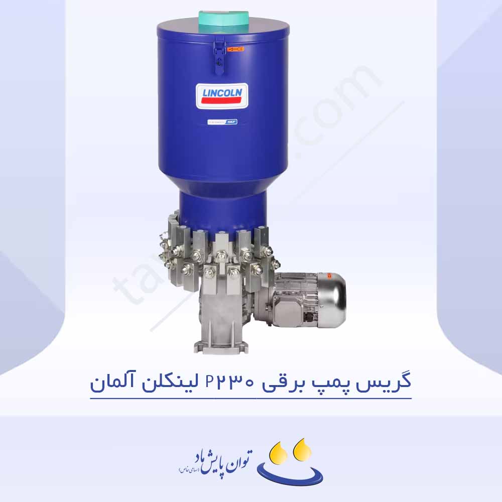 گریس پمپ برقی P230 لینکلن آلمان یکی از گریسپمپهای فشارقوی برای سیستمهای گریسکاری اتوماتیک چندخطی است. این پمپ قابلیت نصب تا ۳۰ پمپالمنت قابل تنظیم را دارد. تعداد بالای خروجیهای این گریسپمپ از قابلیتهای ویژه آن بوده و برای تأمین مستقیم گریس به نقاط روانکاری در سیستمهای متوسط و بزرگ مورد استفاده قرار میگیرد. در این گریسپمپ به دلیل تعداد زیاد پمپالمنتها، یک الکتروموتور قدرتمند سهفاز با توان ۰٫۲۵ کیلووات در نظر گرفته شده است. این ویژگی موجب افزایش توان و پایداری در شرایط سخت کاری میشود و امکان کارکرد مداوم در صنایع سنگین را فراهم میآورد.