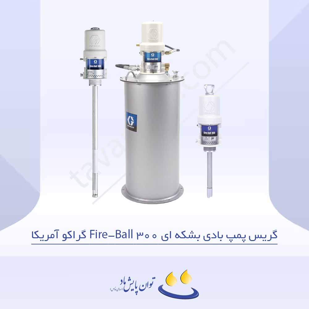 گریس پمپ بادی بشکه ای Fire-Ball 300 گراکو آمریکا با نسبت فشار 50:1 یک گریسپمپ بشکهای بهشمار میآید و در صنایع مختلف بهعنوان ابزاری مناسب برای روانکاری شناخته میشود. این گریسپمپ بهدلیل طراحی مهندسیشده و تعداد کم قطعات مکانیکی، دوام و عمر طولانی دارد و تعمیرات آن بسیار ساده است. گریس پمپ فایربال 300 در محیطهای بسیار سخت از جمله دماهای پایین و شرایط آلوده عملکرد بینقصی دارد؛ بهطوری که در معادن سردسیر تنها گریسپمپی که بدون مشکل کار میکند همین مدل است.